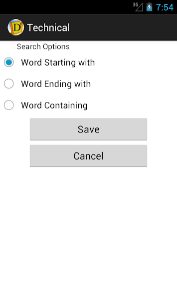 - "Search Options" feature that help to search the word "Starting" with searching word or "Ending" with searching word or "Containing" the searching word.