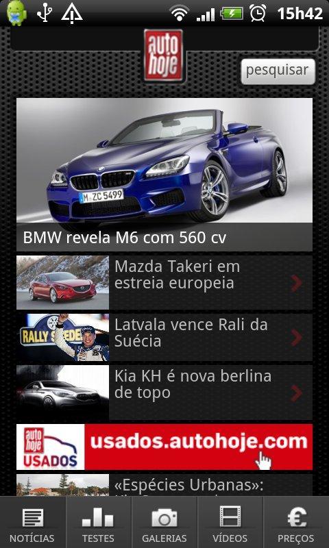 News Autohoje is the best and most complete Portuguese news application on time to the car world and car sport. With information permanently updated by the writing of Auto Today, this free application integrates all content that interests those interested in cars. All the information in your hand, at a finger distance.