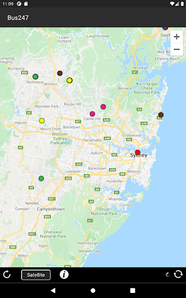 Bus247 finds buses that are closest to your current location and displays them on a map with live updates.