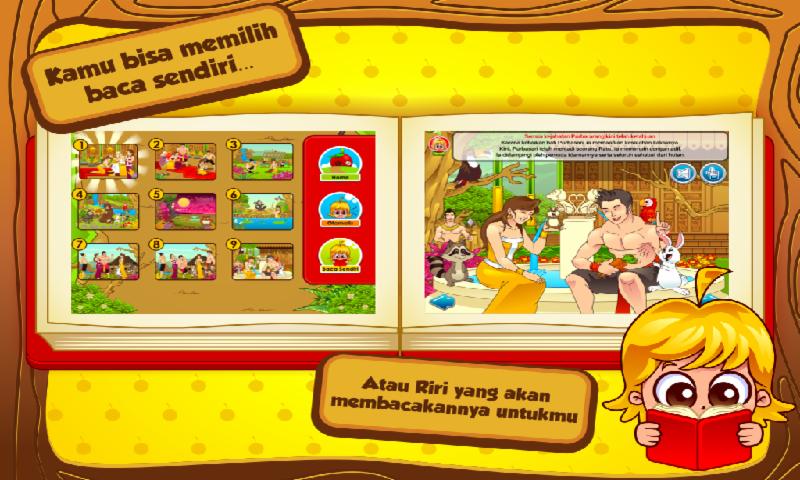RIRI an interactive children's book series whose theme original folklore of Indonesia as well as Tales and fables from around the world. All this folklore and fairy tales packaged in an interactive, served with Indonesian nuance. This children's book can be used by children who can not read through narration and animation automatically. For children who can read can use the Read Alone mode. In addition to the Interactive Children's Story Book, each series is provided of educational games for children that educates as Colors, Numbers, Numeracy and much more.
