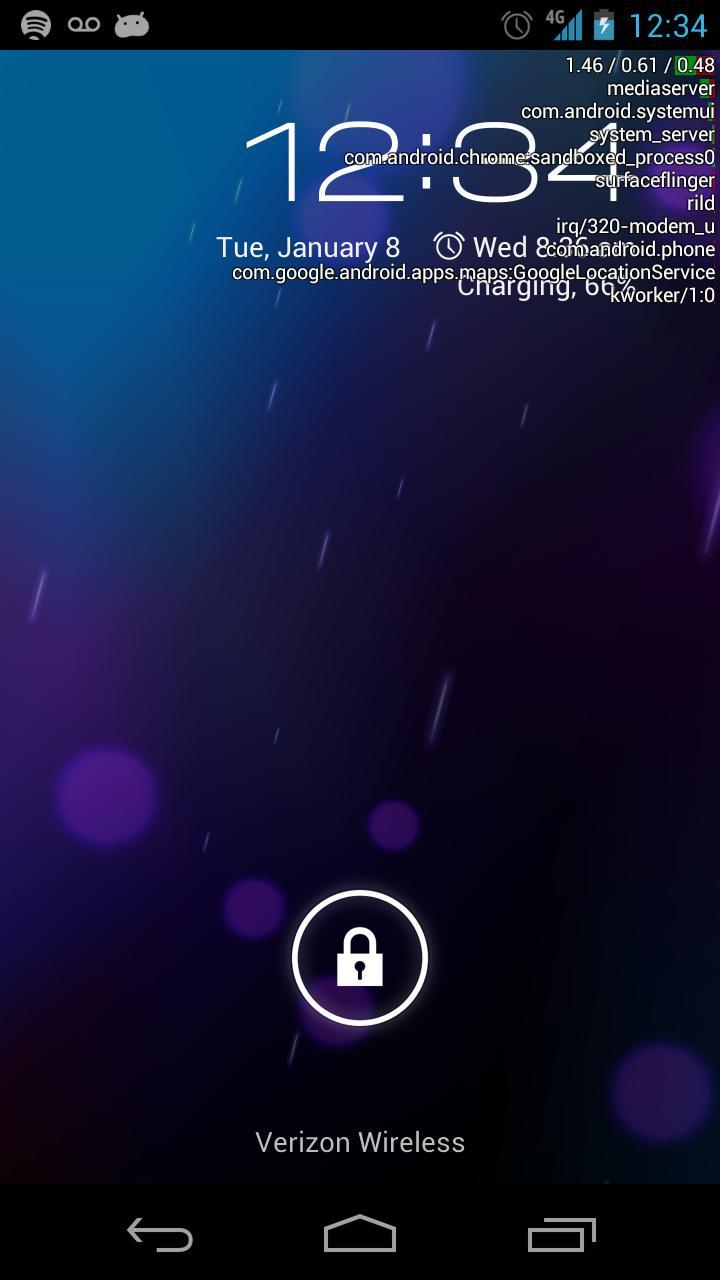 CPU Usage Overlay is the quickest way to check your CPU usage. Simply tap the widget and a process list will be overlaid on top of your screen. This allows you to view your cpu use as you go about using your apps.