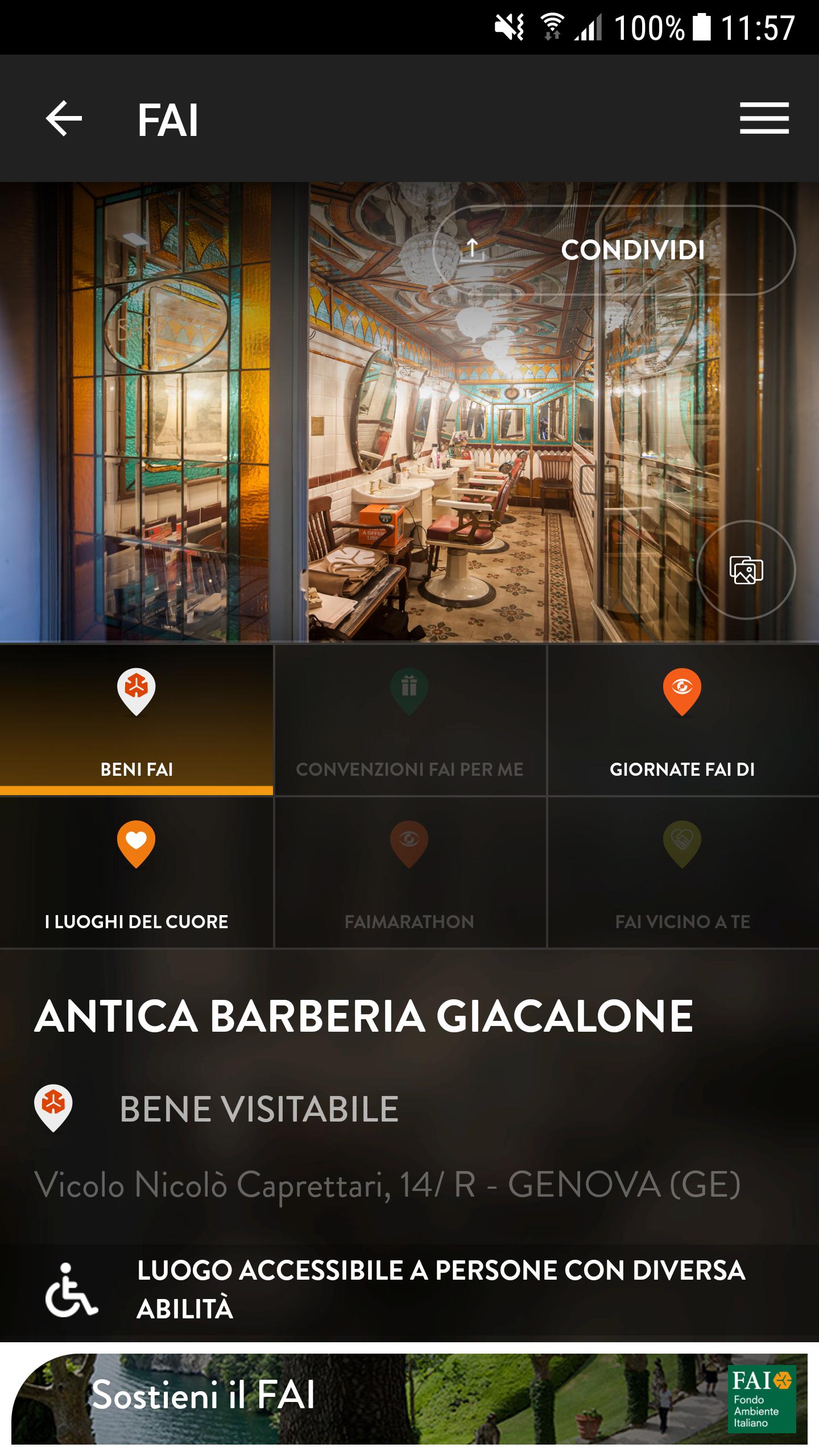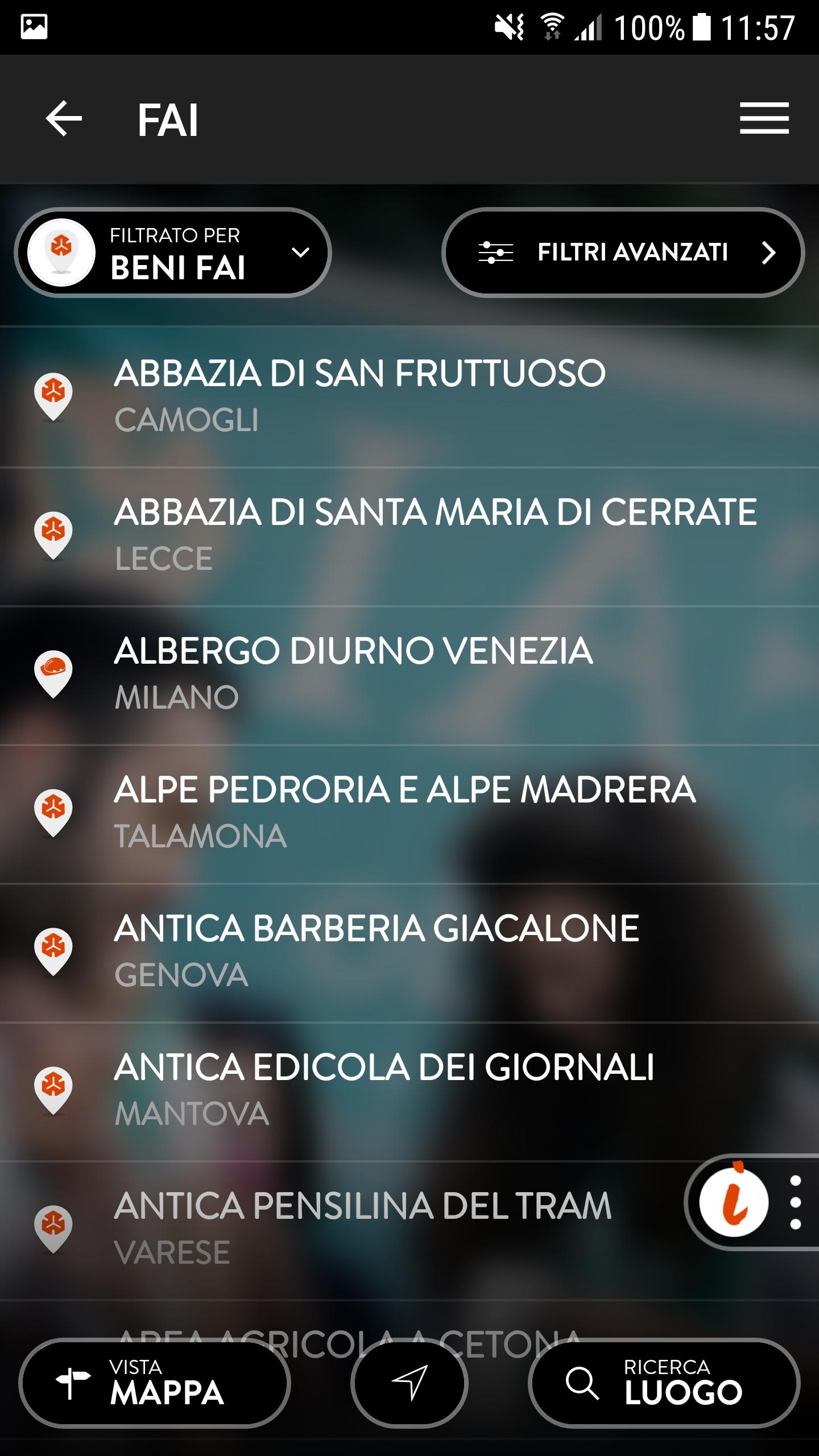 FAI is the new app of the Italian Environment Fund, the non -profit Foundation that since 1975 is committed to the protection of Italian artistic and naturalistic heritage. A heritage that belongs to each of us and that is our duty to know and defend, for us and for generations to come. In 40 years of activity, FAI saved over 50 places, including 32 monumental assets regularly open to the public and has been activated to spread the importance of protecting Italian cultural heritage. The work of FAI is made possible by all those who support the Foundation, in particular the members, volunteers, friendly companies, enlightened public bodies ...