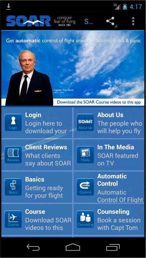 SOAR – established in 1982 - has opened up the world to 10,000 fearful fliers. Now available as an app created by the leading authority on flight phobia: author, airline captain and licensed therapist Tom Bunn, M.S.W., L.C.S.W.