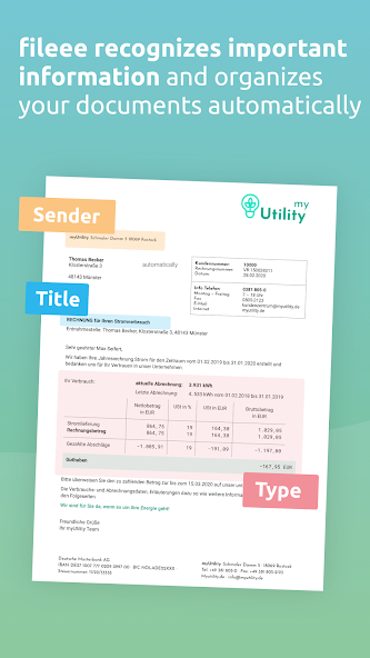 With fileee you can scan, organize and access your documents anywhere, anytime. fileee analyzes your documents, automatically recognizes important content and sorts your documents accordingly. Thanks to fileee, you always have your documents at hand and can find what you need in a matter of seconds.