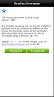 Each haunt includes a description, dates & hours open, link to their website, and buttons to directly navigate you to the haunt!