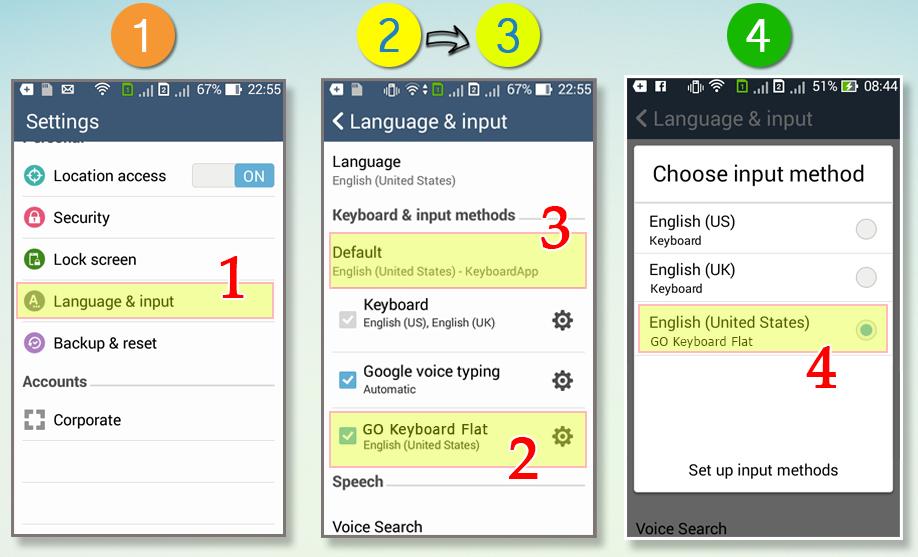 - Click to select Default English (United States) - GO Keyboard Flat.