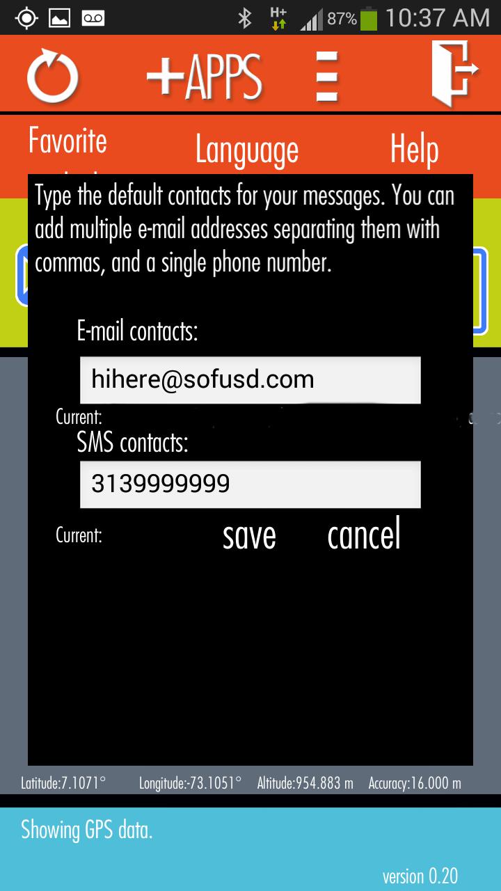 Hi Here, I am here - is very easy to use. You can set up your favorite contacts in your default e-mail account to notify “this is my location” quickly to your closest contacts... with just a few clicks.