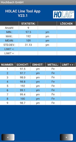 HOLAC Line Tool App - Mobile Data Logging for HOLAC Thickness Gauges