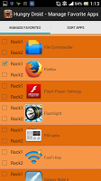 Hungry LockScreen lets you lock your device in a completely new way. The lockscreen has "RACKS" - like those on shelves where you can place your favorite apps for quick access. The apps can be long-pressed and dragged to the "DROID" icon (the hungry droid ;-)) to unlock the screen and launch the apps. The apps can be configured and sorted from the "Manage Favorite Apps" screen. The "Manage Favorite Apps" Screen can be launched from the "manage apps/settings" drawer.