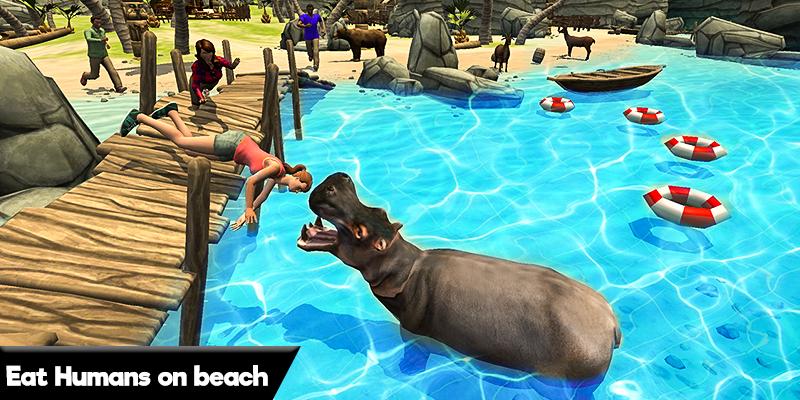 The hippo will swim out from the sea and attack people who will run for their lives. Not only people, hippo will also attack: