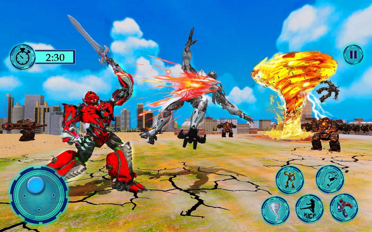 Hey Superhero! Let's get your immortal superhero robot tornado suite ready for the city rescue missions 2019. City is under attack by futuristic grand robots and you have to fight as a Mech robot city attack survival for crime city warfare in amazing futuristic war environment in this futuristic robotic war transformation game. There is great fighting all around in this robot fighting game and everything seems fighting. Get ready yourself for thrilling and hurricane Tornado Robot Wars Game adventure. Robots wars have commenced in this tornado simulator which is giving you a new taste of war robot games with a blend of superhero fight & robot transforming games in an avenge against other superhero robot.
