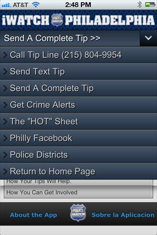 iWatch Philadelphia puts crime tipping and crime reporting into the palm of your hand, allowing individuals to get crime information and submit crime tips to law enforcement on their cell phones or PDAs. It is provided free of charge by the Philadelphia Police Department, and helps citizens support the Department of Homeland Security agenda, See Something, Say Something.