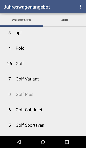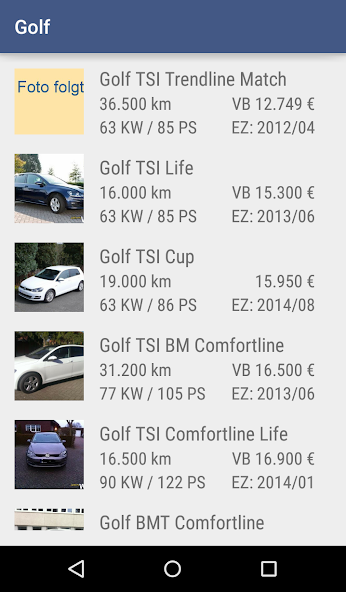 This app is developed and filled with last year's car. Since we are only at the beginning, there is still relatively little year-old car in the app. Other producers besides Volkswagen and Audi are not planned in this app.