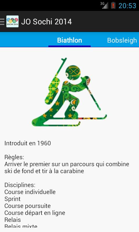 You have presentation of all disciplines, calendar of events, city geography and history of winter games.