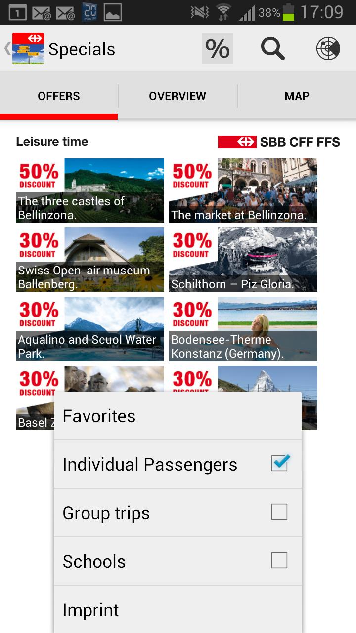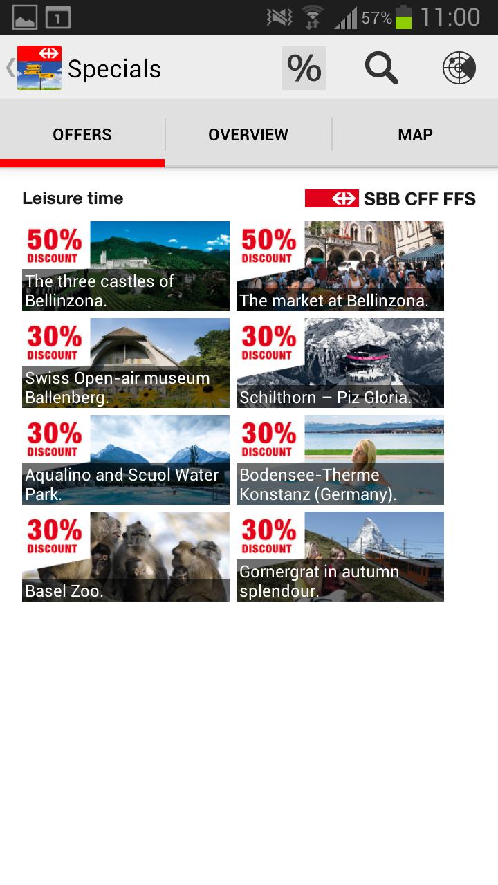 • Leisure time offers are available with discounts of up to 50% (top offer) or up to30%