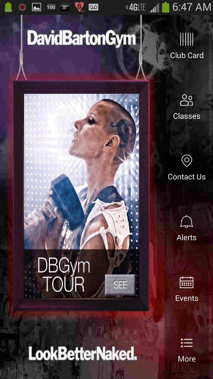 Welcome to the David Barton Gym app. This app will allow you to have the complete member experience in the palm of your hand. You can check class schedules and request a training session from your mobile device. Plus you can stay informed with the club alerts feature.