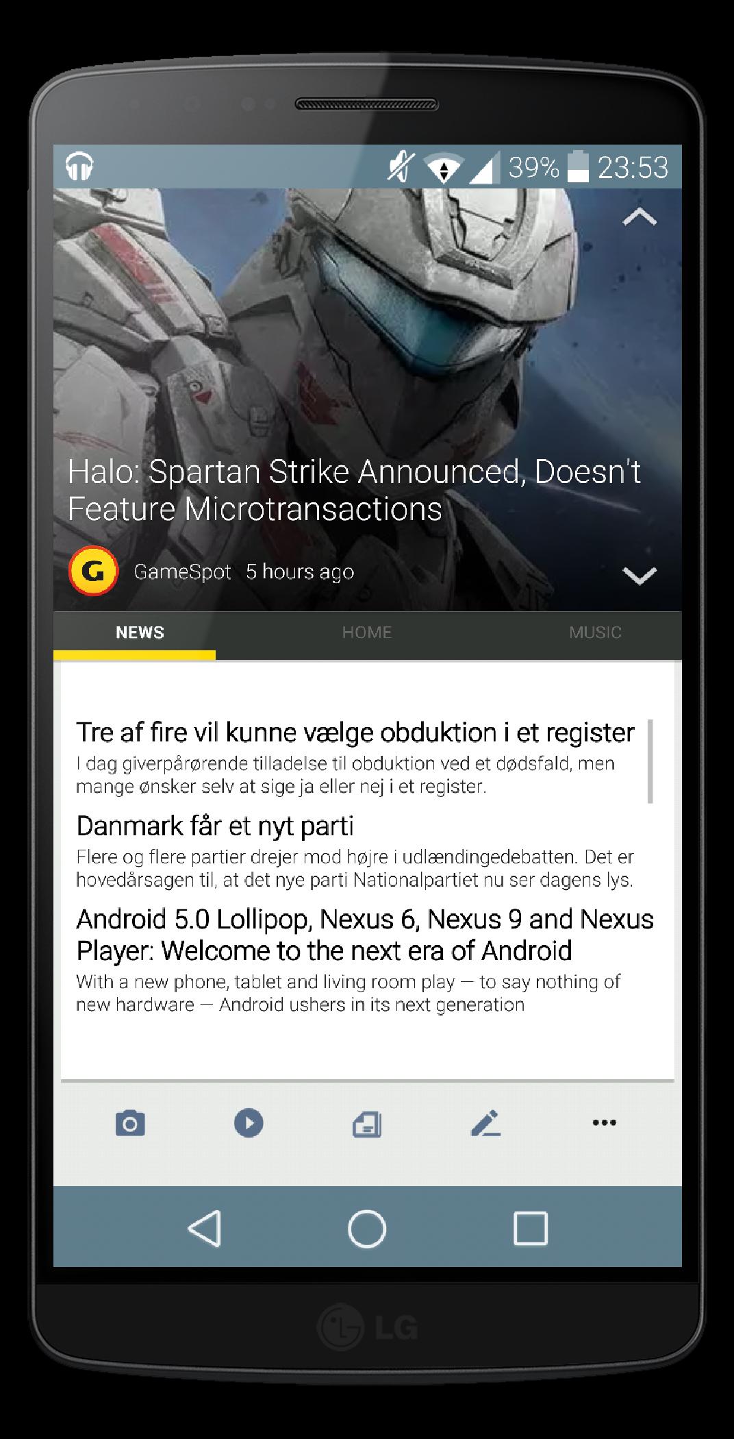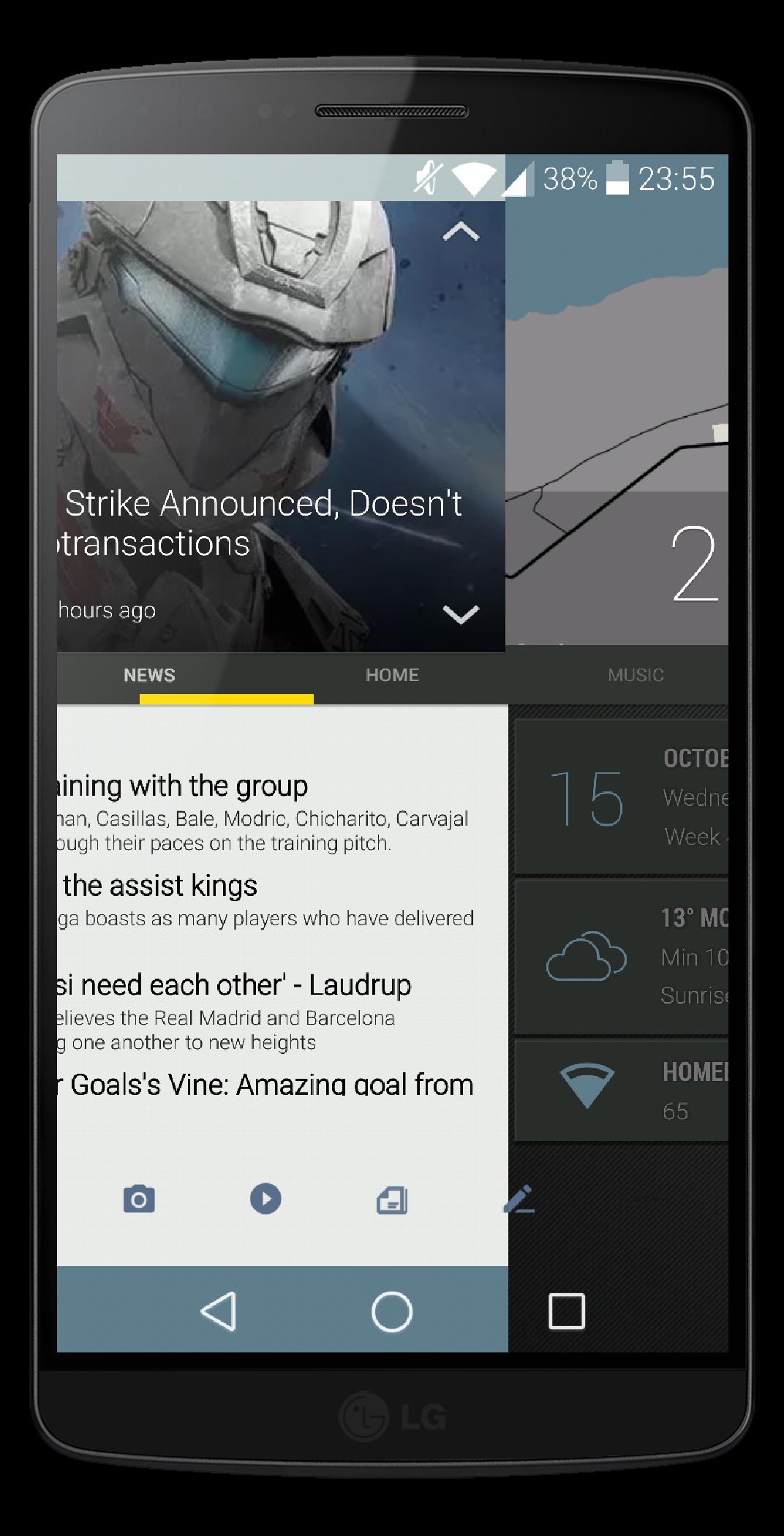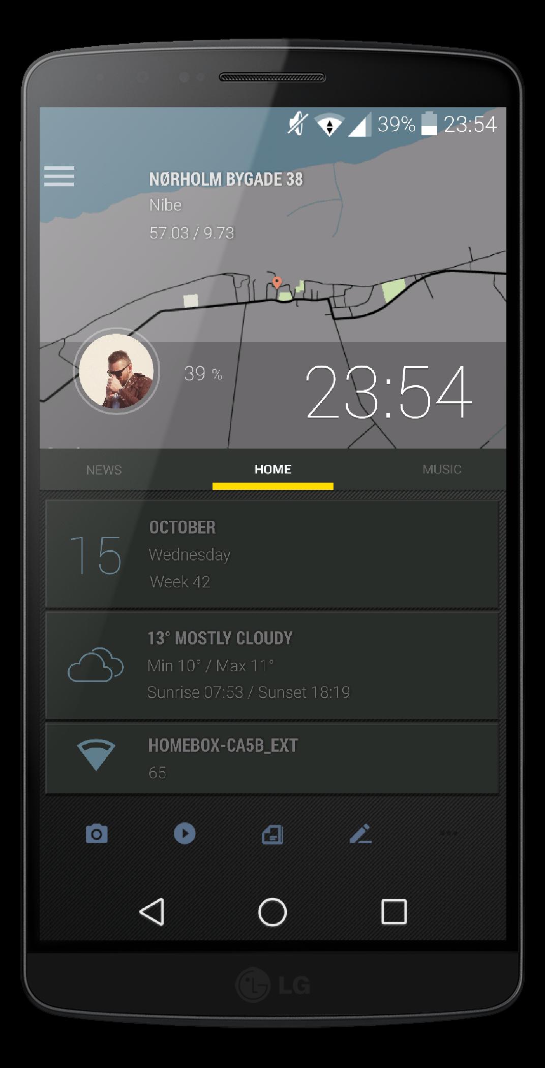 Main skin with dark center screen with info and night mode map. Sides with space for widgets for news and music. Cool material animations.