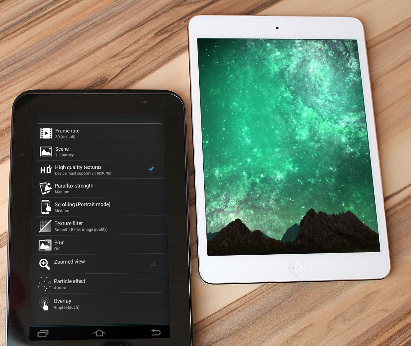 New High Quality wallpapers for Lollipop with tons of customization options! The sky rotates slowly like in Time-lapse videos. Meteors, asteroids and flying stars burn in the atmosphere and auroras are blazing. The absolute best 2015 summer wallpaper is here!