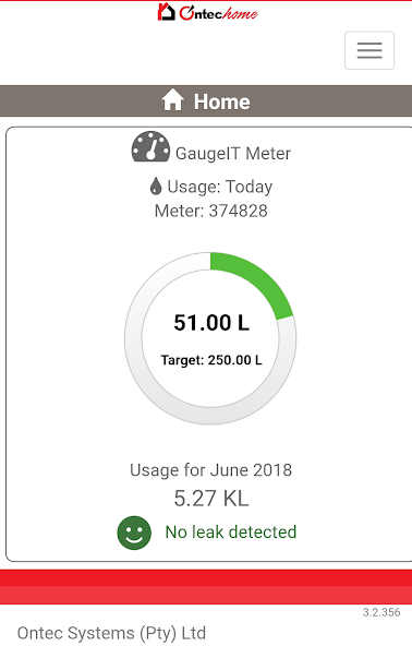 Ontec HOME is a smart monitoring application that allows users to monitor their household water consumption through the GaugeIT solution as well as purchase prepaid electricity. Through Ontec HOME users can monitor more than one household and can provide a friendly alias for the various houses being monitored.