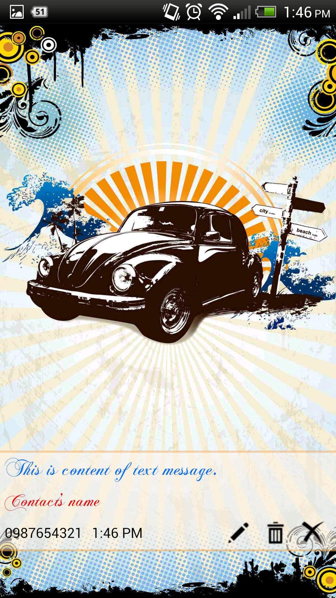 Personalize SMS will show whole text message content when you receive a text message. Personalize SMS can let you edit font size, font color and font type of text message content, contact's name, phone number.
