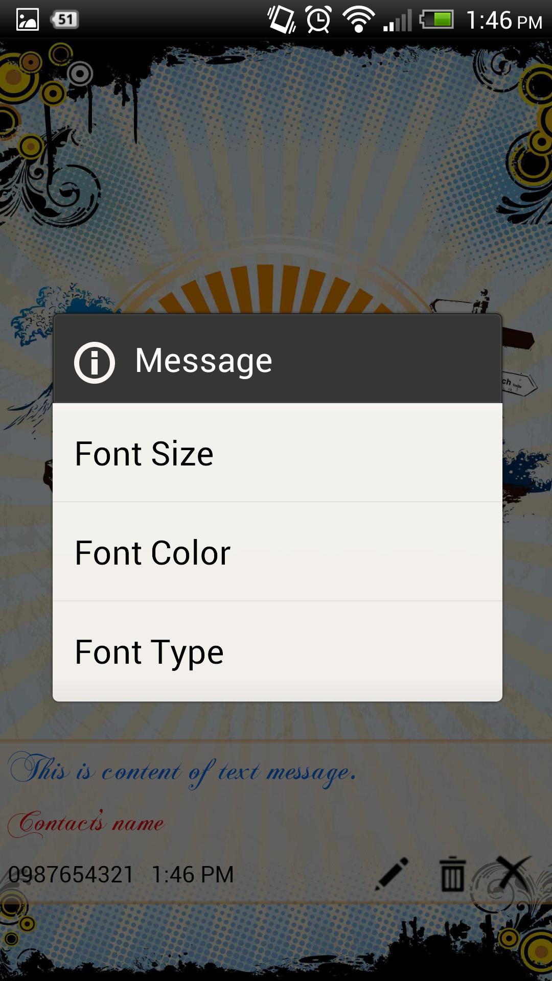 3. Edit font type of text message content, contact's name, phone number