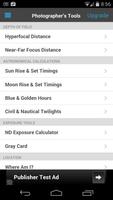 "Photographer's Tools Free" is a mobile app for both Pro and amateur photographs with a lot of useful tools and features.