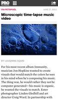 PRO Photographer curates news feeds from dozens of publishers, news providers and blogs, live to your smartphone, as a daily stream of inspiration for imaging professionals. The best stories, trends and tips from the world of commercial photography and photojournalism—encompassing both motion picture and stills—is available for free through a single app.