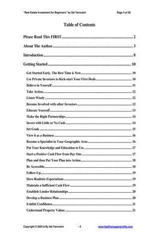 Real Estate Investment for Beginners is written by Sal Vannutini, a veteran real estate investor. In one compact little book, he has written some powerful pearls of wisdom that pack a punch the likes of which doesn't even begin to get covered in all that other mess of tapes and paperwork.