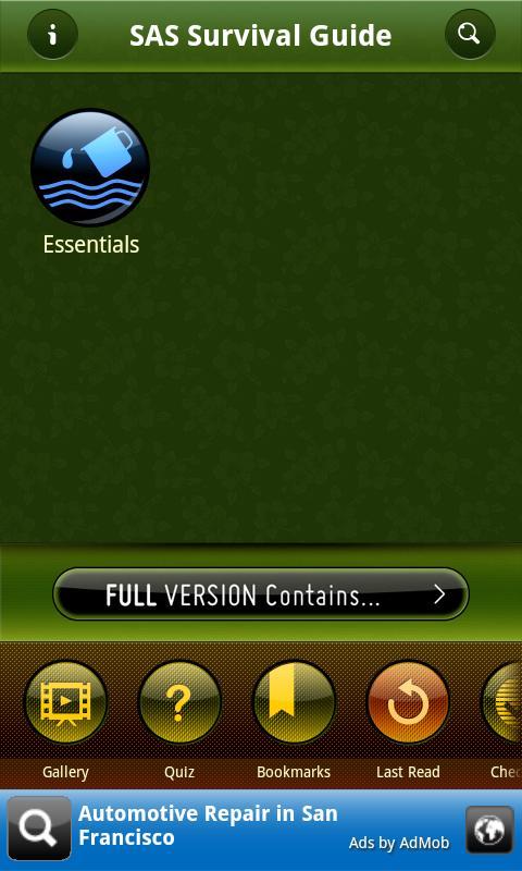 SAS Survival Lite is the FREE version of the complete SAS Survival Guide, available now in the app store. Based on the million-copy bestselling book, this fantastic free app provides you with a bare bones guide to wilderness survival. Jam-packed with basic survival tools, you'll be equipped for any expedition to the outdoors with this entry-level guide in your arsenal.