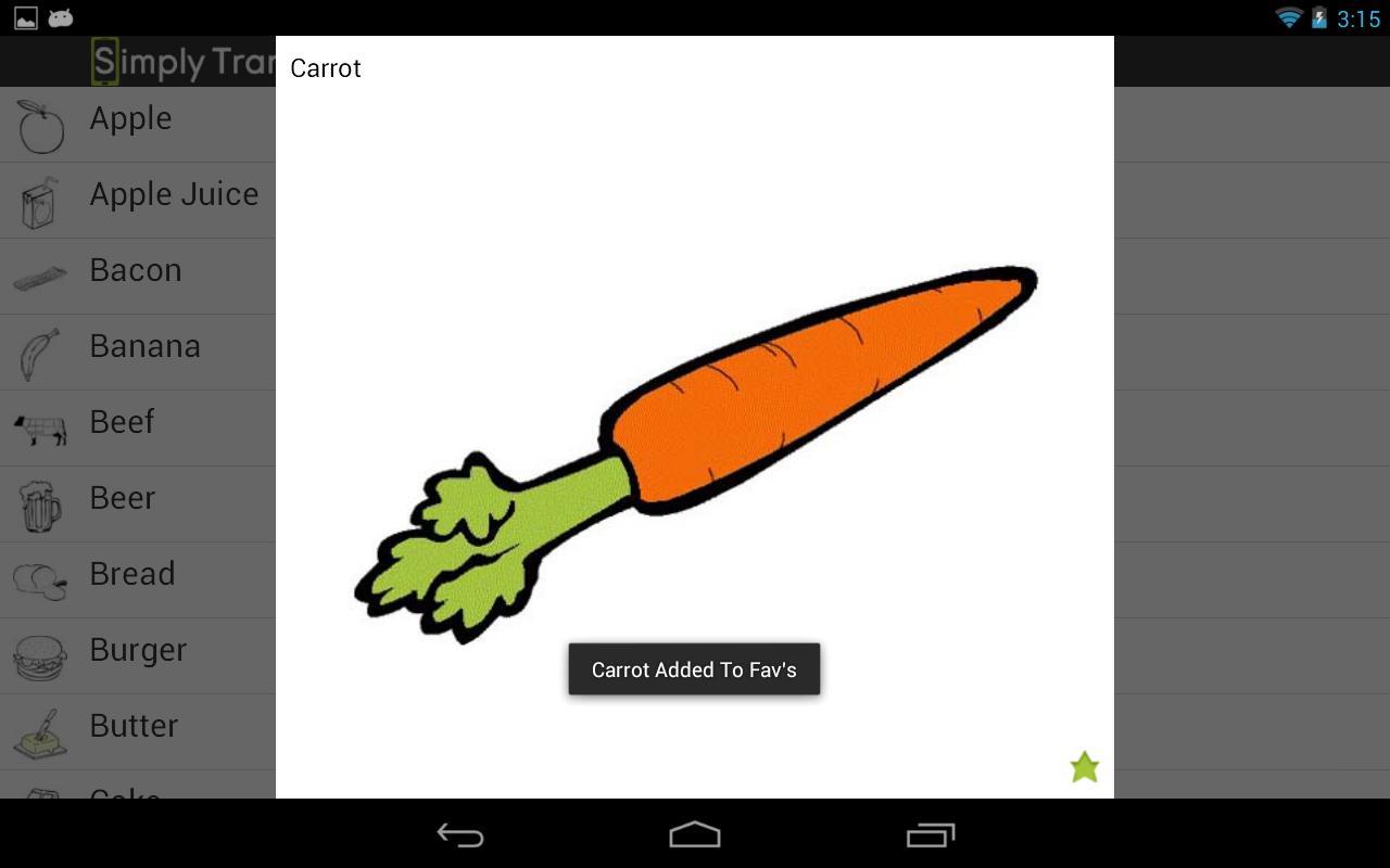 It's Simply Translate. Ever need to convey something simple like water, bike or the colour Orange but you don't understand the native language and you cannot be understood? Well then use this app and show them a picture of it - it's as simple as that!