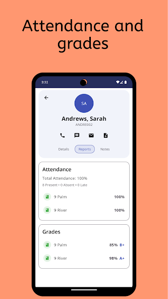 Message students or parents via SMS or email directly from the app.