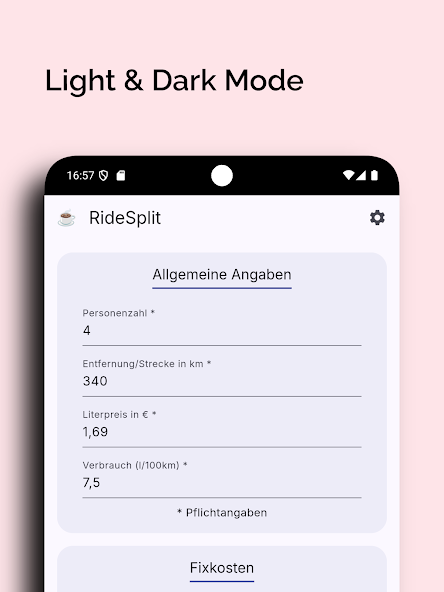 The app will quickly calculate and divide the total expenses, including gas costs and additional wear and tear, ensuring that each person contributes their fair share. Whether you're splitting road trip expenses, daily commutes, or weekend getaways, this tool makes it easy to keep things fair and transparent.