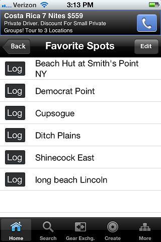 -Search public surf spots ,view a map or list of all public surf spots created by other users (currently US only)