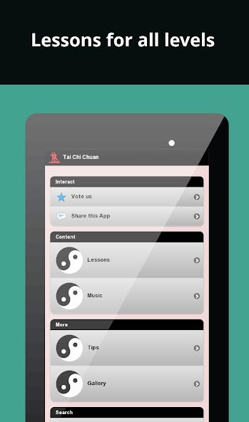 If you want to practice Tai Chi, this is your application. With Tai Chi Chuan app you will learn everything you need to know about this Chinese martial art, its slow, controlled movements and meditation for relaxation, health and self-defense.