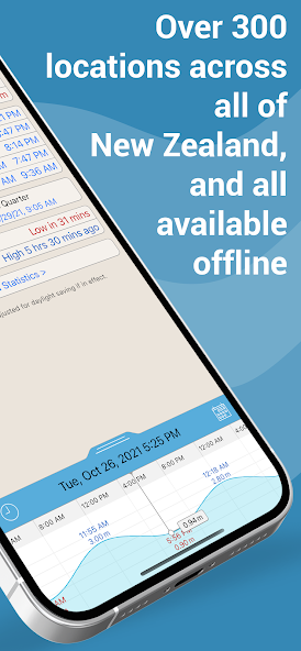 Displays tides in a table & graph for over 200 locations in New Zealand