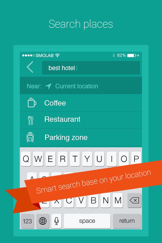 Search Places. Create Places at current location. Share places to Friends