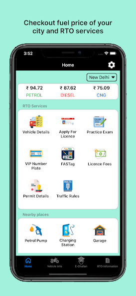 Live & Travel with Vahan app and find all the solutions of vehicle in one application like vehicle information, live price, E-challan, Rto services, Preparation for RTO exam, Insurance and more.
