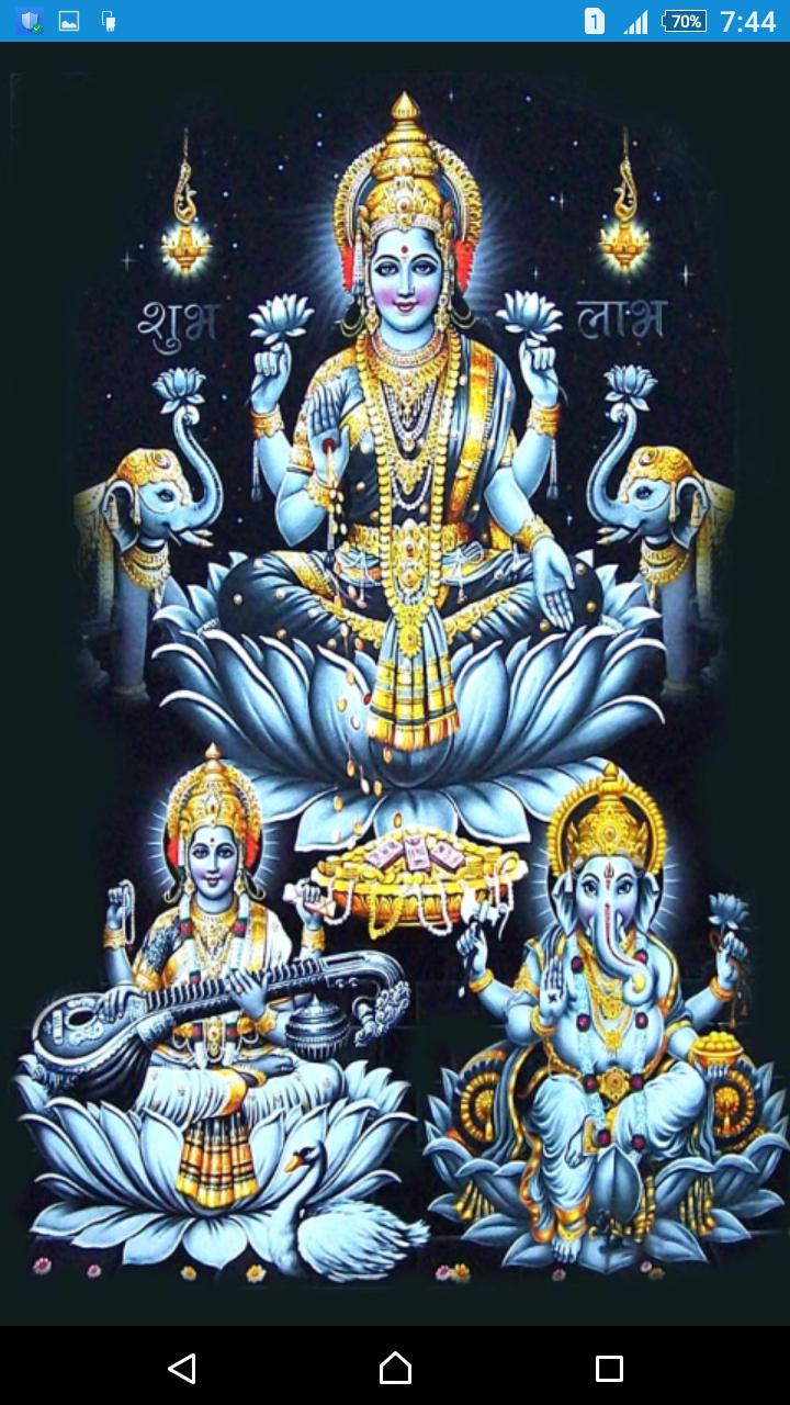 Two swans are depicted on the left side of the Goddess. A swan is said to have a sensitive beak that enables it to distinguish pure milk from a mixture of milk and water. A swan symbolizes the power of discrimination. Saraswati uses the swan as Her carrier. This indicates that one must acquire and apply knowledge with discrimination for the good of mankind. Knowledge that is dominated by ego can destroy the world.