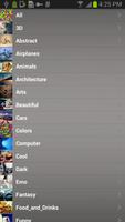 "3D", "Abstract", "Airplanes","Animals", "Beautiful", "Cars", "Colors", "Computer", "Cool", "Fantasy", "Funny", "Games", "Holiday", "Landscape", "Motorcycles", "Nature”, "Scenery", "Seasons", "Sexy", "Space", "Sports”…