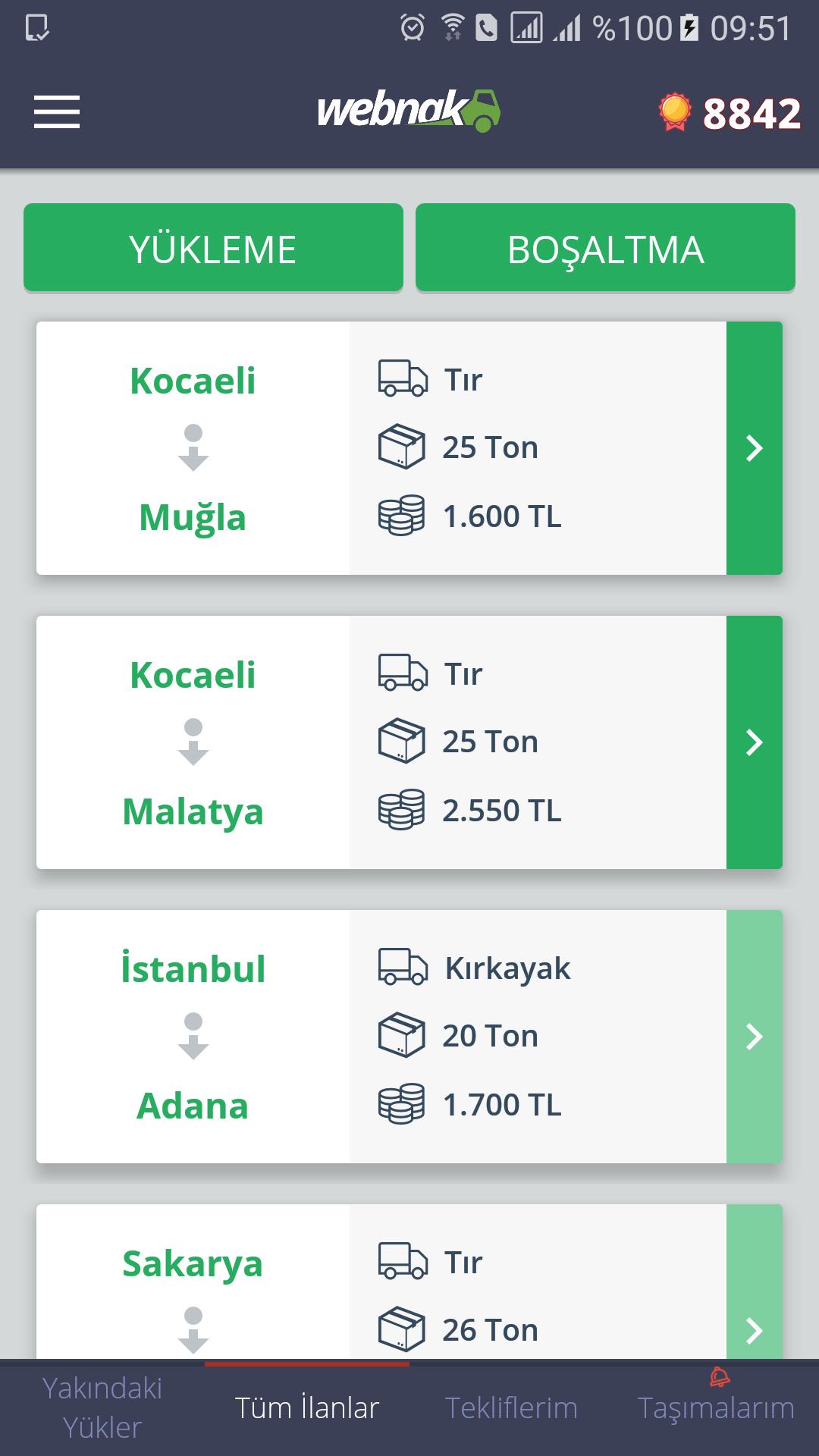 • With Webnak Mobile Application, the possibility of finding a load from every point 7/24