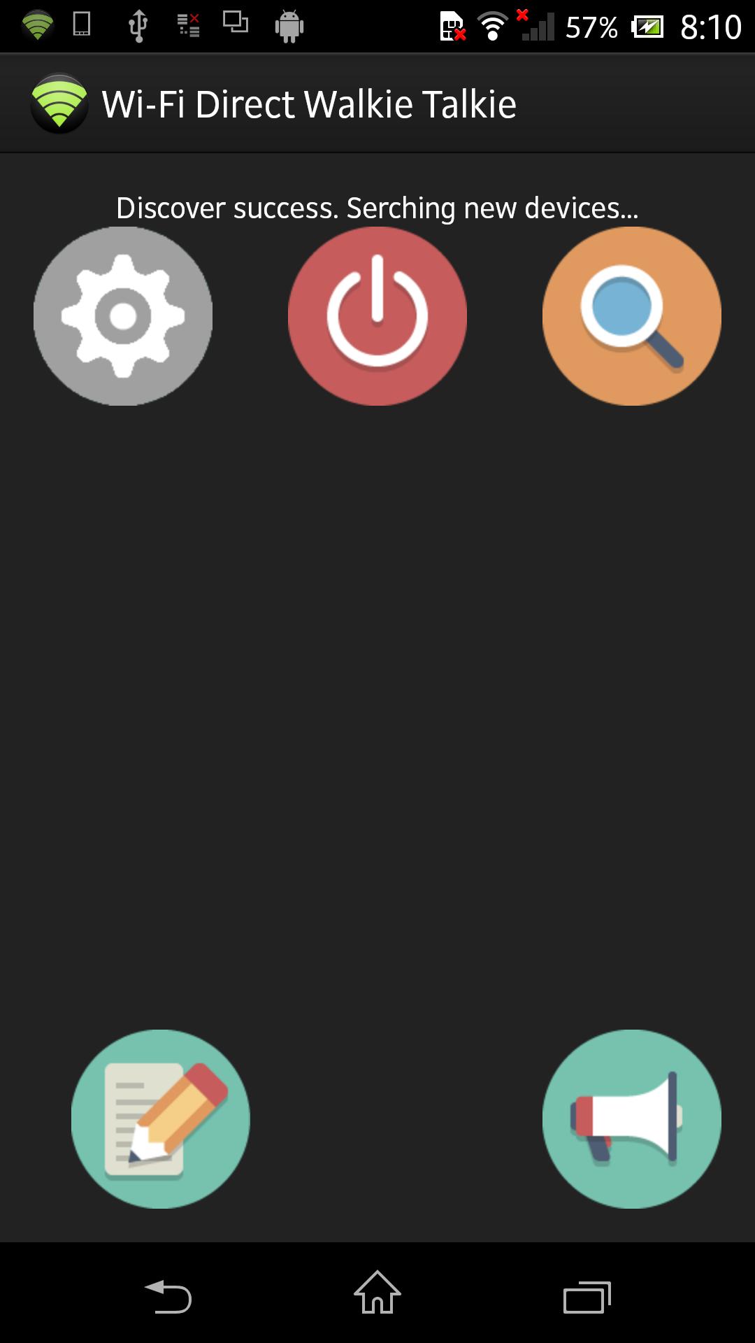 This application turns your phone or tablet into walking talking radio without access to the Internet. It uses Wi-Fi Direct technology for provide connection between two android devices. Your device must support Wi-Fi Direct.
