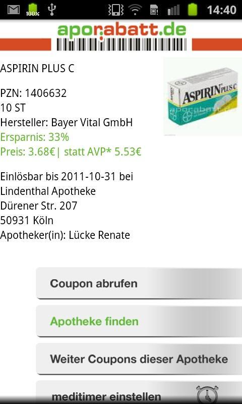 وفر مع تطبيق aporabatt يصل إلى 70 ٪ على الأدوية التسوق في المدينة
