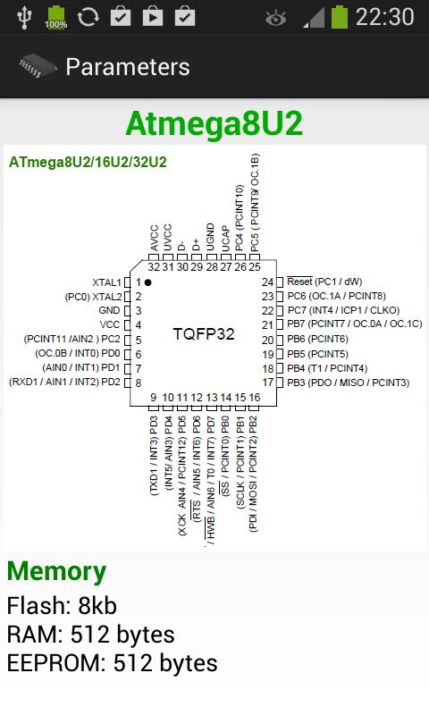 This application allows you to check the parameters of typical AVR® microcontrollers (mainly Atmega).