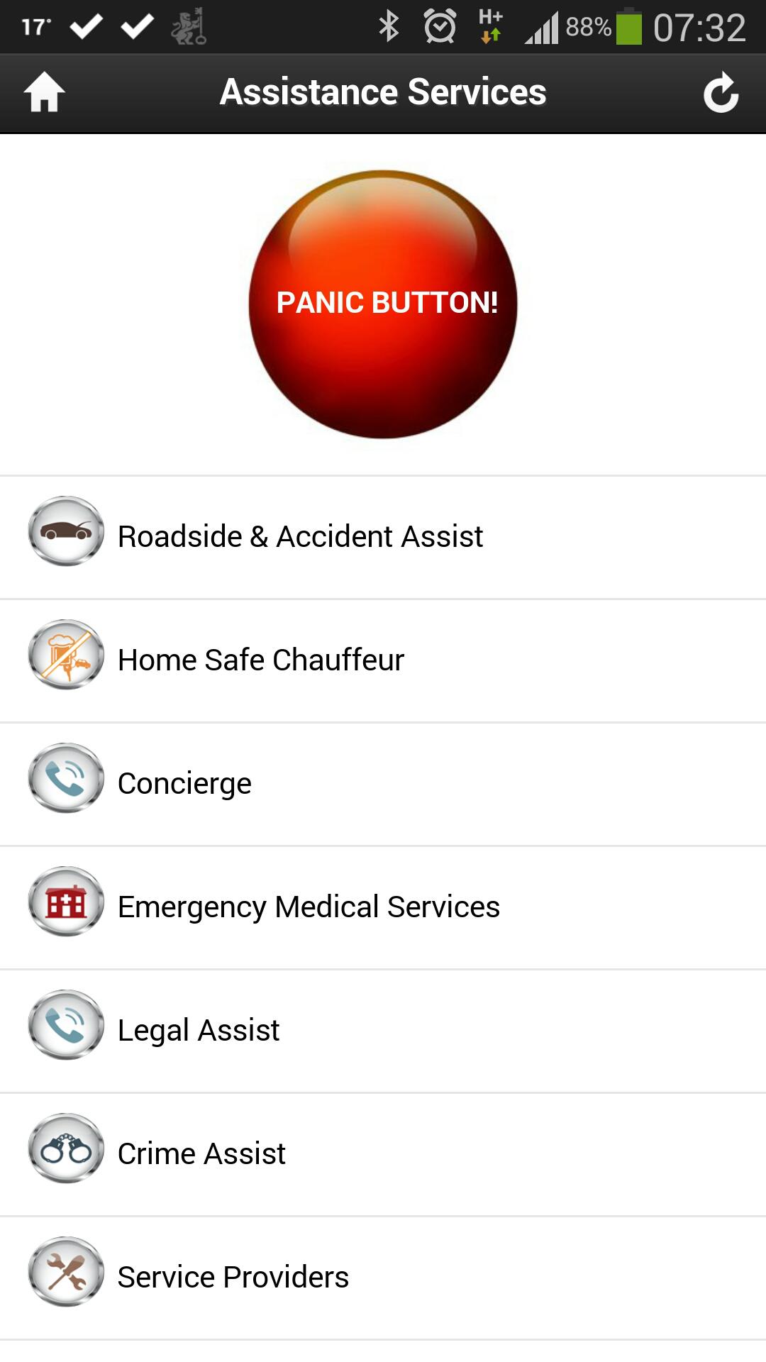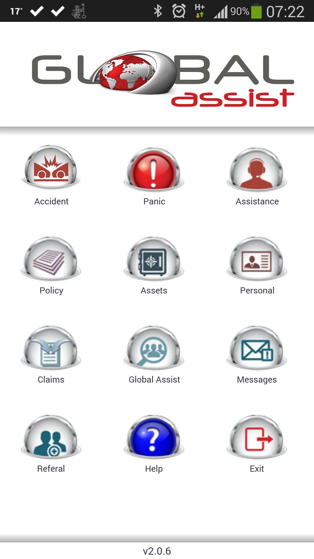 خيارات Global يوفر تطبيق أحد المساعدين وصولًا مباشرًا إلى مستخدم التطبيق في حالة حدوث حالة طوارئ - لدى مستخدم التطبيق زر ذعر على التطبيق الذي يرسل رسالة إلى مركز الاتصال الخاص بنا يتضمن معلومات حيوية لضمان الإجراء السريع - الاسم ورقم الاتصال وتفاصيل الاتصال في حالات الطوارئ وأهم موقعهم. تُستخدم هذه العملية أيضًا للوصول إلى مجموعة خدمات المساعدة التي يتم توفيرها للأعضاء كجزء من البرنامج المضافة القيمة. يمكن للعملاء عرض بيانات السياسة المباشرة وإكمال جميع المطالبات المتعلقة بالتأمين.