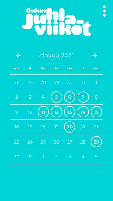 بمساعدة تطبيق Oulu Festival Weeks ، يمكنك التخطيط لتجاربك مع معلومات البرنامج الحديثة.