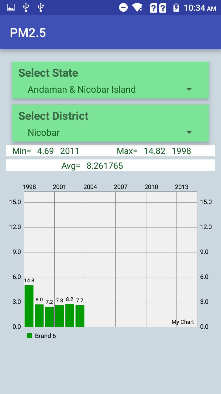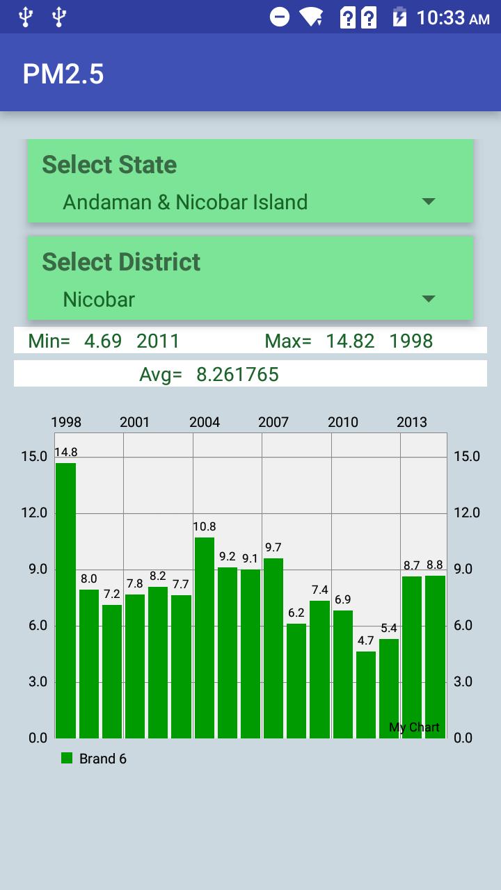 يمكنك معرفة أي عام كان مستوى التلوث أعلى وأدنى. كما يتيح لك الحصول على متوسط القيمة ومقارنتها مع ولايات ومناطق أخرى في الهند.