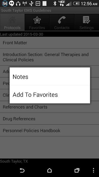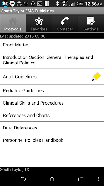 إرشادات South Taylor EMS هي تطبيق مجاني يوفر وصولًا سريعًا دون اتصال بالإنترنت إلى إرشادات South Taylor و TX EMS والمواد الداعمة.