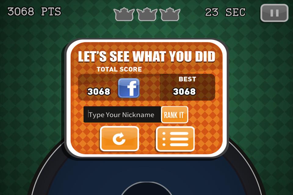 سحق نقاط صديقك ، وشاركك على Facebook وشاهد موقفك في الترتيب العالمي.