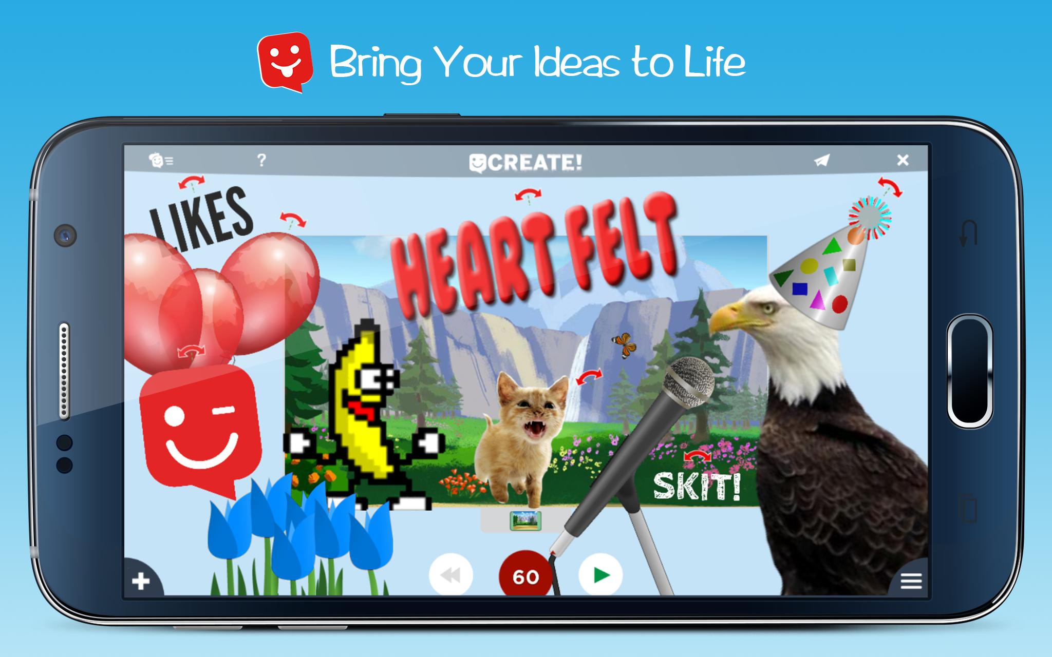 إنشاء مقاطع فيديو وتكوين صداقات! قم بإنشاء رسوم متحركة رائعة بسهولة على الفور، ثم قم بالدردشة والمتابعة وإعادة المزج مع المجتمع الضخم من "المتزلجين!" .... فقط قم بعمل مسرحية هزلية واحصل على متابعين سريعًا :P