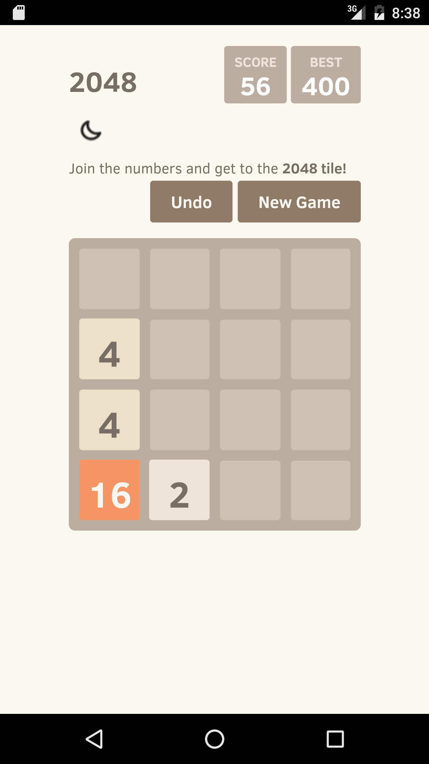 أردت فقط أن أجعلها قابلة للعب على الفور بدون الإنترنت ومع أيقونة وصول سريعة لهاتفي الذكي. إنه أبطأ قليلاً من التعليمات البرمجية الأصلية لأن كل شيء يعمل في عرض WebView Android. إذا كنت تريد أن تتمكن من المساهمة في الإصلاحات/تسرع هنا https://github.com/uberspot/2048